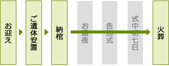 ご葬儀の流れとしましては、安置場所からそのまま火葬場へ向かう運びとなります。