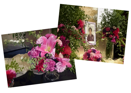 華やかなピンクや赤が好きだった母なので、とにかく明るく華やかな彩りで大きめのお花を使ってほしいとわがままをいいました。